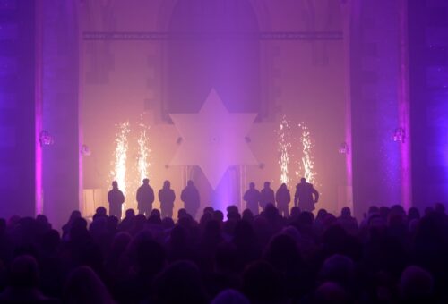 Das Lichtdesign und eine musiksynchrone Flammen und Lichtshow von Gloryfire.